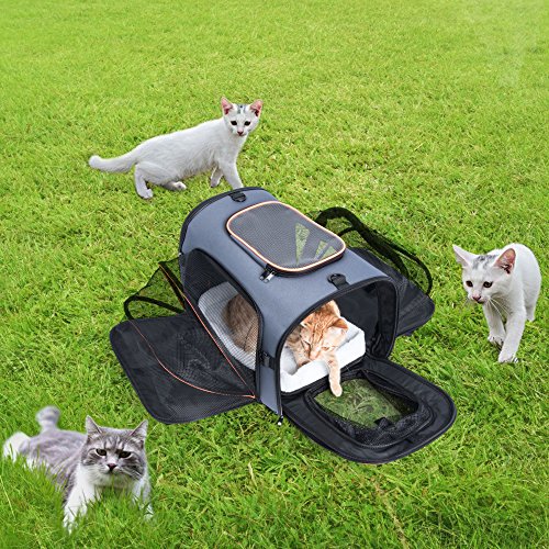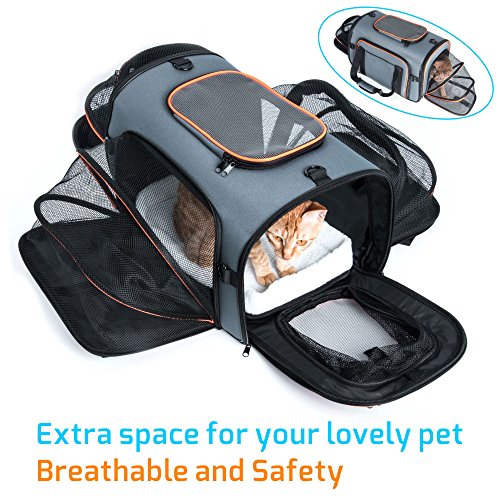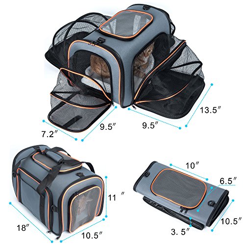 -. Binding : Misc. -. Brand : Veckle -. Color : 4-Side Expandable -. EAN : 0714838878921 -. Feature : Air Travel Approved Pet Carrier Bag: In non-expandable status, the size would be 18 * 11 * 11 inch; This pet cat and dog carrier would perfectly fit the under-airplane seats of almost American airlines; Carrier for cats or small animals up to 18 lb / 4 Sides Expandable Pet Tote: This expandable pet carrier bag has 4-side expansion for your lovely pet and give it more space to move around; Let's set your pet in this carrier and go air traveling with this TSA approved pet carrier; Comfortable PAD INCLUDED / Breathable Mesh Pets Carrier: The top and the side of this pet travel bag designed with mesh windows to ensure plenty of ventilation for maximum airflow; When you expand all the 4 sides, there is all breathable strong mesh construction for your pets / Carrier Sturcture: Special thick wire frame designed outside the surface to prop up the bag in that shape and not bend or kink up; Comes with an adjustable padded shoulder strap for you to carry your pet as the crossbody bag for your cats, dogs or other small animals / 12-month warranty for your 100% satisfaction: We provide a year of quality-guarantee service for this pet carrier travel bag; The folded size of this pet travel bag could be 18 * 11 * 3.5 inch easily for you to storage -. Label : Veckle -. Manufacturer : Veckle -. PackageQuantity : 1 -. ProductGroup : Pet Products -. ProductTypeName : PET_SUPPLIES -. Publisher : Veckle -. Size : 18*11*11 inch -. Studio : Veckle -. Title : Expandable Pet Carrier, Veckle Airline Approved 4 Sides Expansion Pet Cat Travel Tote Bag Foldable Soft Side Carrier for Cats Dogs and Small Animals -. UPC : 714838878921