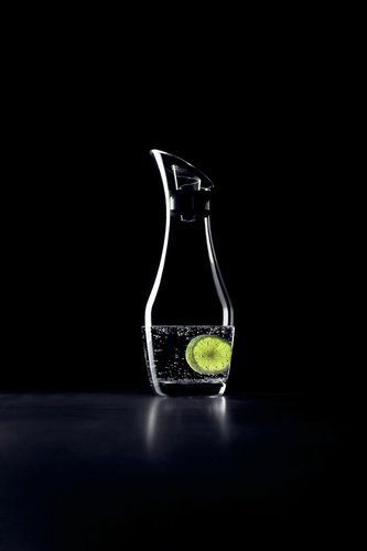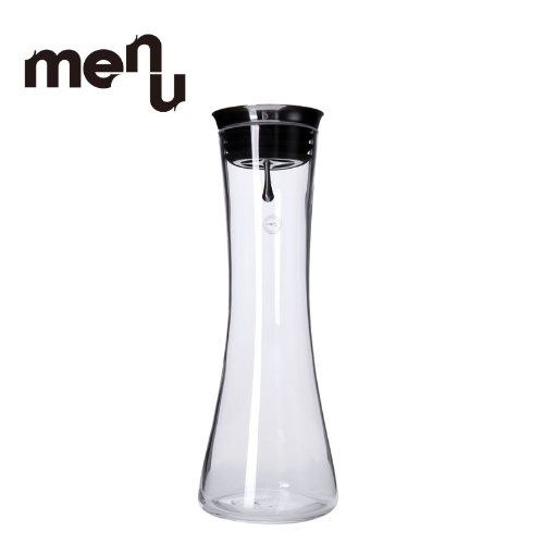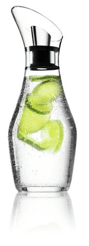 Product Description A tall, slim and simple water jug specifically created for the purpose it was intended. There can be little doubt that the jug is for pouring water, not wine. The slender, waist-like shape provides a solid grip and the elegant lid comes with a mechanism which automatically opens when you pour, ensuring that foreign objects stay out and ice cubes, slices of lemon and mint leaves stay in. 0