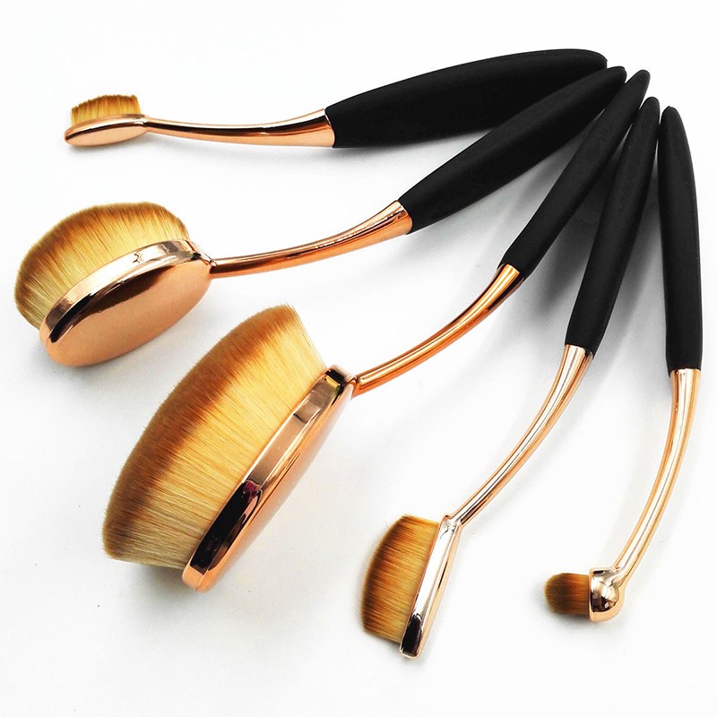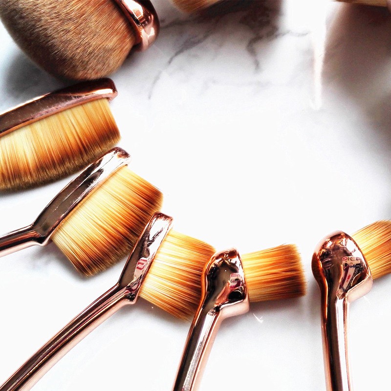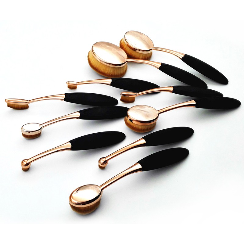 10 Piece Rose Gold Oval Makeup Brush Set Cosmetic Foundation Cream Powder Synthetic Brushes Tools Foundation Oval Brush