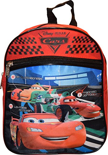 -. Brand : Cars -. Color : Black-Red -. Department : boys -. EAN : 0727379032523 -. Feature : Made of an easy to clean and very durable polyester / Features zippered main compartment / One front pocket with zipper closure / Adjustable shoulder strap / Backpack dimensions: 10"H x 8"W x 4"D -. PackageQuantity : 1 -. ProductGroup : Apparel -. ProductTypeName : LUGGAGE -. Size : Small -. Title : Disney Pixar Cars McQueen 10" Mini Backpack -. UPC : 727379032523