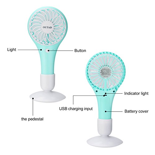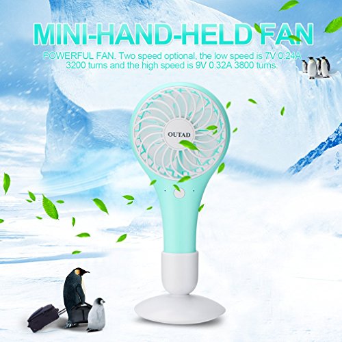 OUTAD Mini USB Battery Operated Fan Handheld Small Fan (GREEN)