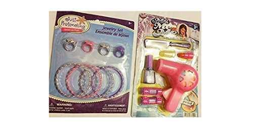 Product Description ? Package Includes: pretend make up kit with lipstick, blow dry, rollers, comb, and more ? 1 Pack of: bangles, earrings, rings, each package varies. 2 Counts 0