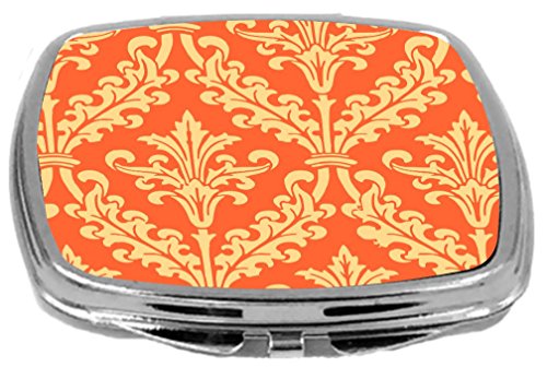 Rikki Knight Compact Mirror, Autumn Orange Damask