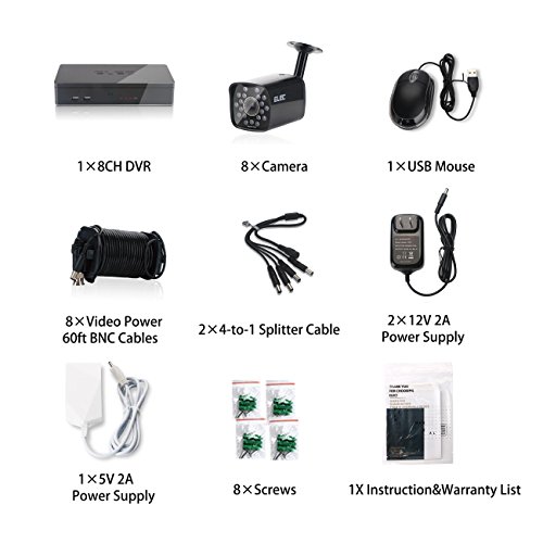 -. Title : ELEC 8CH HDMI 960H DVR 1500TVL Outdoor Indoor Day Night IR-CUT CCTV Surveillance Home Video Security Camera System , Motion Detection Push Alerts QR Code Quick Scan Remote Viewing- NO Hard Drive