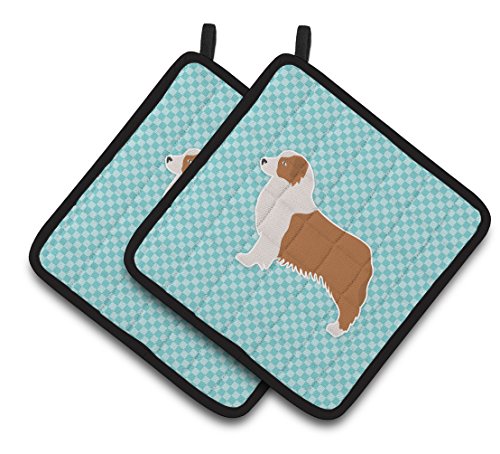 Caroline's Treasures Australian Shepherd Dog Checkerboard Blue Pair of Pot Holders BB3733PTHD, 7.5HX7.5W, Multicolor