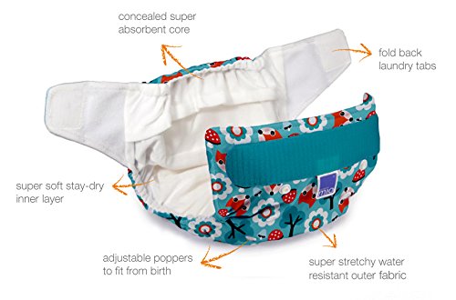 • Stylish, super soft all-in-one cloth diaper. The diaper is one size meaning it will grow with baby from birth to potty training.