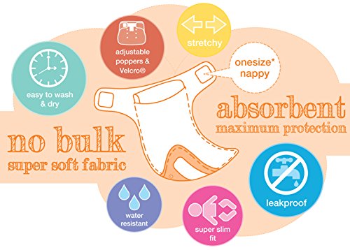 • The size of the diaper can be changed using the adjustable snaps and Velcro style fastenings to suit the shape of your little one.
