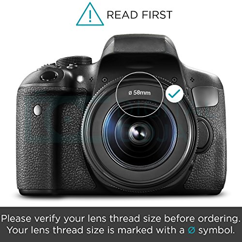 NOTE: This Kit is compatible with all 58mm lenses. Please verify your camera's lens thread size before ordering. Your camera's lens thread size will be marked somewhere on the lens barrel or printed underneath your lens cap. This number is always preceded by a "Ø" (diameter) symbol. For example: Ø58 = 58mm lens thread size.
