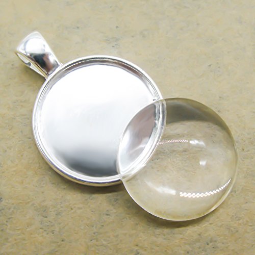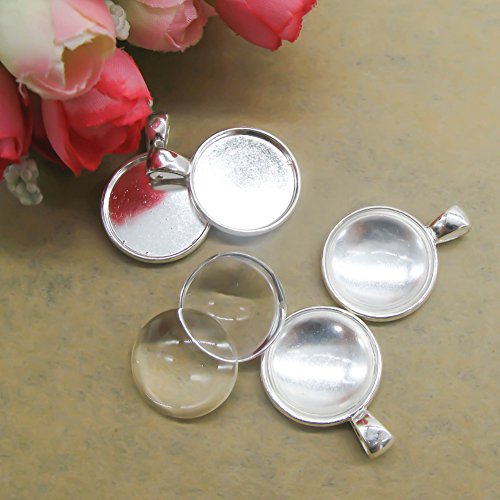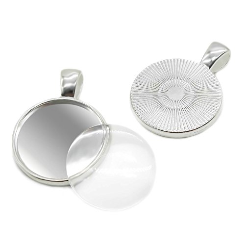 TOAOB Antique Silver Color Round Metal Bezel Base Setting With Glass Round Cabochon 20mm Great for Making Pendants pack of 1set