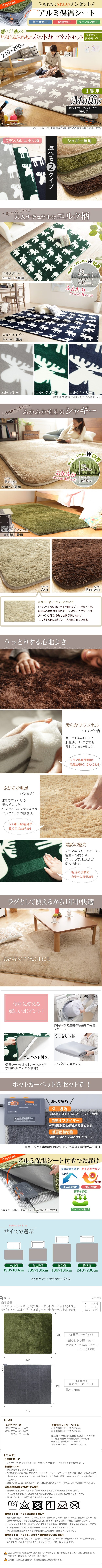 ●ホットカーペット カバー セット ラグ シャギー 北欧 エルク 無地 フランネル 洗える ふんわり 保温シート とろける