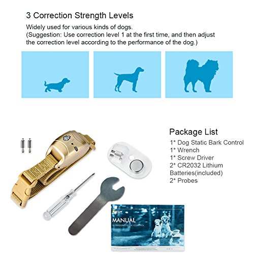Studio : Petacc Publisher : Petacc Binding : Misc. Product Description Information Exquisite shape, powerful function! Our product emits static shock correction to your dog and helps discourage annoying barking. What's more, the gold apperance makes your dog more cute and cuddly. If you want to know more details or have any questions, please look through the detailed page or contact the customer service.?? Feature Material:ABS Size: 2.5 x 1.5 x 1.5'/6.4 x 3.7 x 3.9cm Collar range: 7.1'-28.3'/18-72cm Collar width: 0.7'/1.8cm Color: gold Package list: 1* ultrasonic bark control,? 2* button batteries, 2* probes, 2* small tools Notice * The actual color may vary slightly from the online image due to monitor color settings. * Please allow slight measurement deviation for the data. Package Including -1x ultrasonic bark control -2x button batteries -2x probes -2x small tools 0