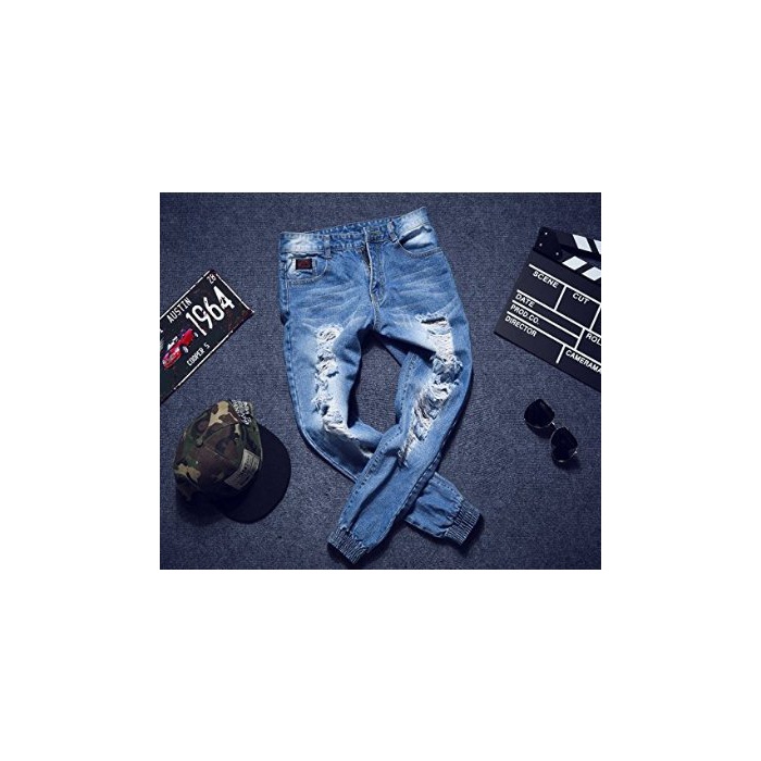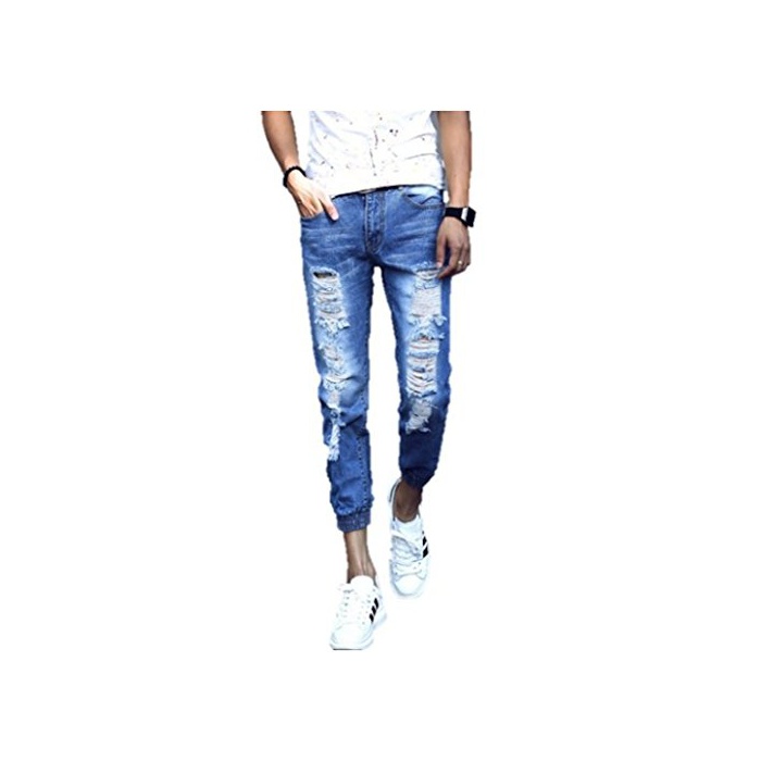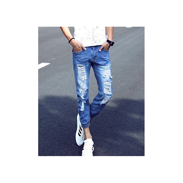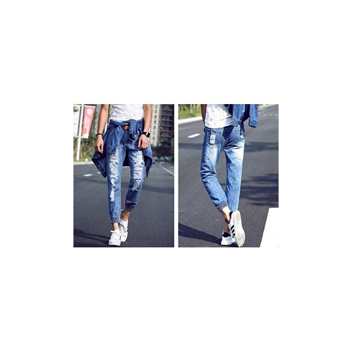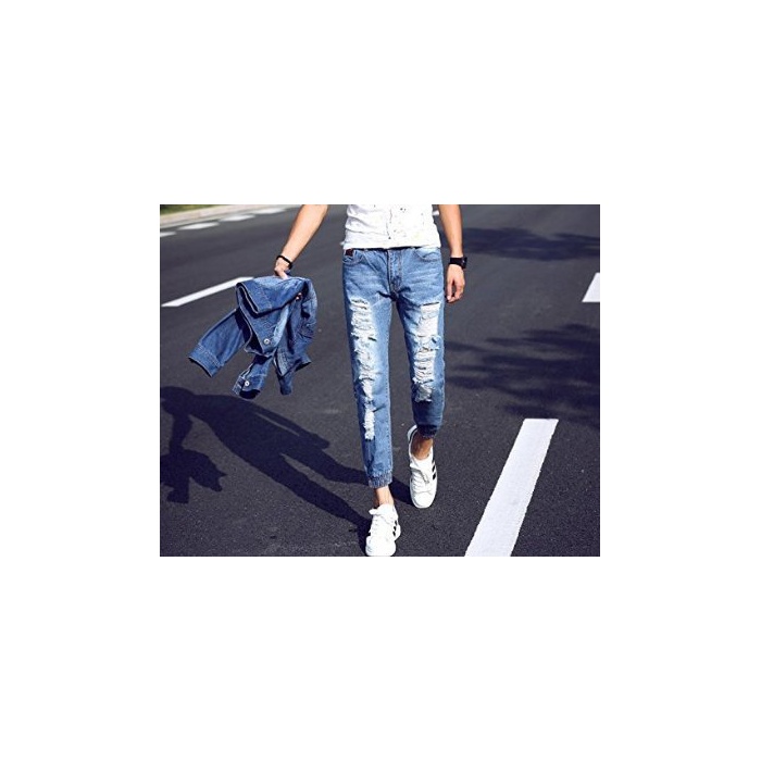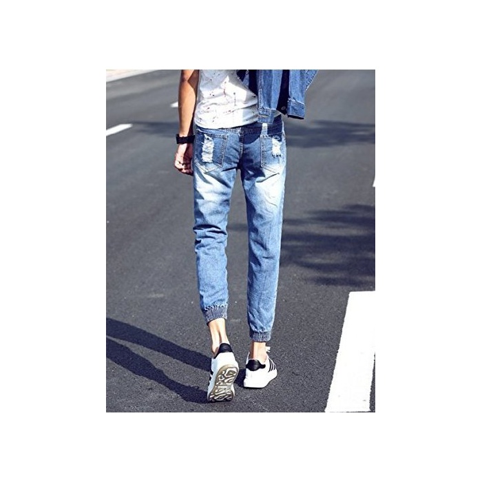 M.O.D.E. 맨즈 데미지 가공 데님 죠《가》 팬츠 10분의 9장 (죠깅)Jogging 스마트 슬림 캐주얼 스트리트