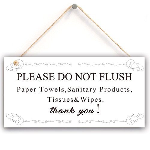 Warning Sign- Please Do Not Flush Paper Towels, Sanitary Products, Tissues & Wipes Vintage Style Sign/ Plaque (5" X 10")