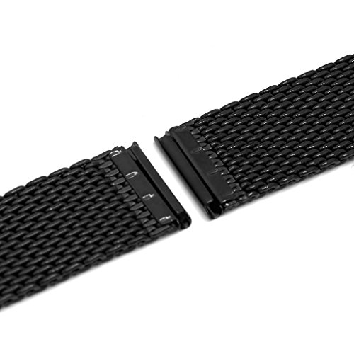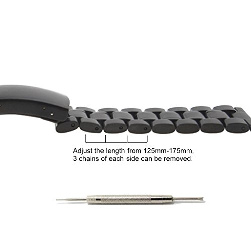 -. Feature : Band width: 20mm; Length: 175mm; Thickness: 3.5mm.Length is adjustable from 125mm to 175mm(3 chains on each side can be removed). / Premium Material: Made from quality 304 stainless steel ensuring toughness and durability in use. Black polished surface brings you a strong sense of high-class quality,fashion and elegance. / Quick Release: Easy to lock or release your band by pushing the button on the clasp. No longer need to drag and not worry about breaking your nail again. / Compatibility: For Moto 360 2nd Gen,LG G Watch,Samsung Gear 2,Pebble Time and any other watches with standard 20mm lugs. / Compatibility: For Moto 360 2nd Gen, LG G Watch, Samsung Gear 2, Pebble Time/Pebble Time Steel/Pebble Classic and any other watches with standard 20mm lugs.
