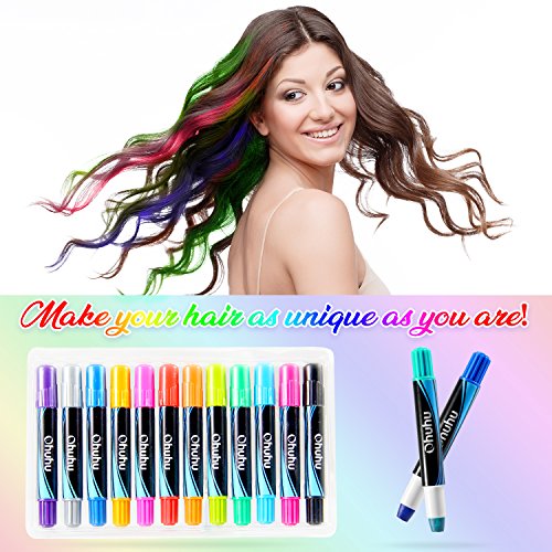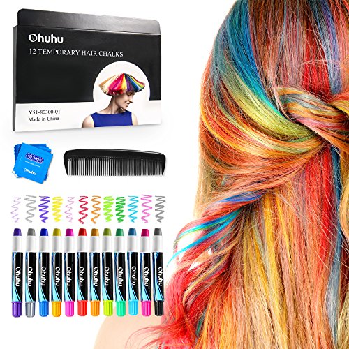 Hair Chalk Pens, Ohuhu 12 Colors Temporary Hair Chalks Salon, Non-Toxic Washable Hair Dye Colors for Party, Cosplay, Theater, Halloween, Girl's Night Out