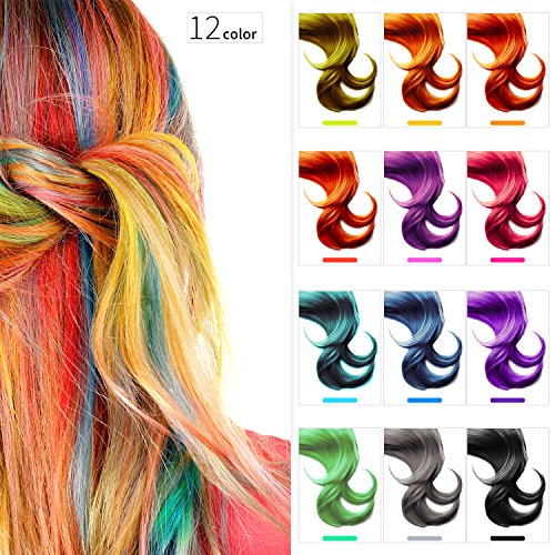 - ❤ DELUXE 12 COLOR SET: Add a splash of color to your world with these awesome chalk pens! Amp up your hair with a fun pop of orange, red, lime green, tan, royal blue, grey, rose red, grass green, sky blue, purple pink, and black. Changing your look has never been so easy.
