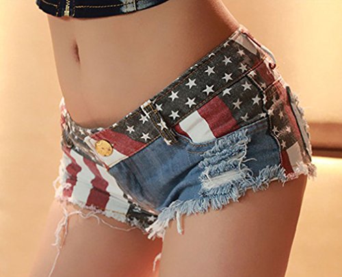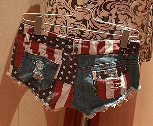 (Soojun)/Women/Shorts/DIRECT FROM USA/Soojun Women's Flag Sexy Mini Short Jeans Low Wais t Cheeky Denim Shorts