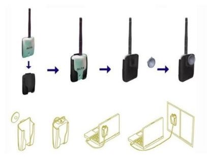 Alfa AWUS036NH 2000mW 2W 802.11g/n High Gain USB Wireless G / N Long-Range WiFi Network Adapter with 5dBi Screw-On Swivel Rubber Antenna and 7dBi Panel Antenna and Suction cup / Clip Window Mount