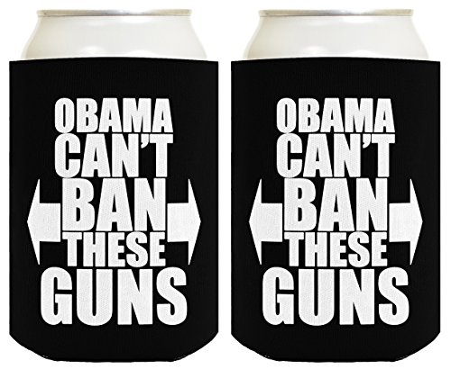 Funny Beer Coolie Obama Can't Ban These Guns Workout Gift 2 Pack Can Coolies Drink Coolers Black