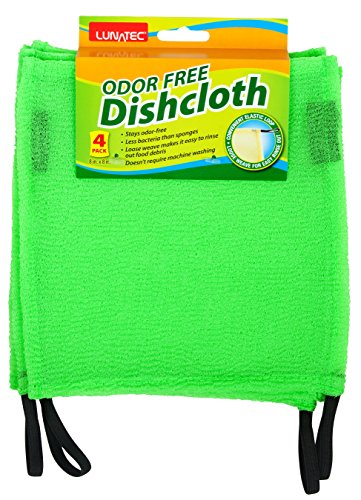 LUNATEC Odor-Free Dishcloths. The perfect scrubber, dish cloth, sponge and scouring pad to clean your dishes, pots & pans, and kitchen gear. Ideal for home, RV, boat galley and camp site. (4, Lime)