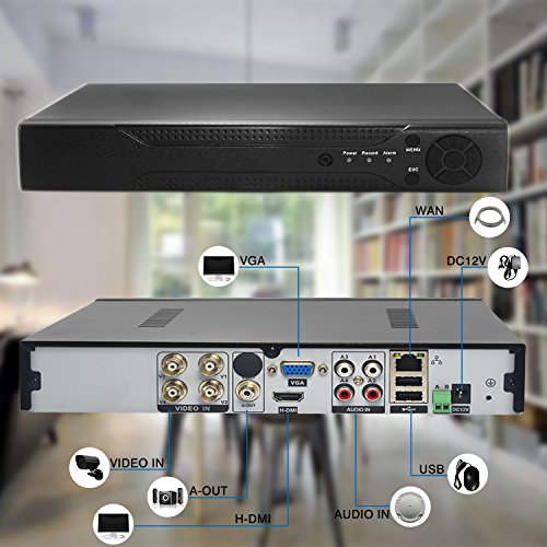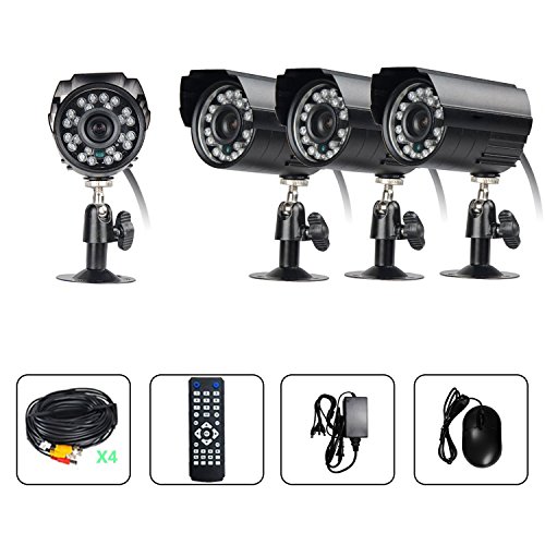-. Feature : 1. 4 Channel 960H digital video recorder with 4pcs 700TVL surveillance cameras for home/apartment/office security day and night; keep an eye of the front door, back door, living room, yard, and garage without getting up or going out. / 2. IP66 Rated bullet camera with built-in 24pcs IR LEDs ensures true color under all lighting conditions day and night, night vision range up to 20 meters. / 3. All bullet cameras are wall mountable & ceiling; the power cable for camera is 18 meters long, please evaluate your installation needs before purchasing. / 4. Free app for live view and playback on smart phone or tablet, PLEASE remember that you need to buy an extra Internal Hard Drive Disk (max 4TB) for recording and playbacking videos, if not, you can also enjoy real-time video feed. / 5. No worry of installation, to help you to set up the system quickly, we made a video for you: https://youtu.be/wlJrMuazHac ; any other question, please contact us.