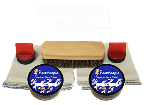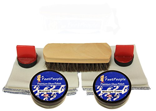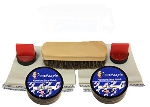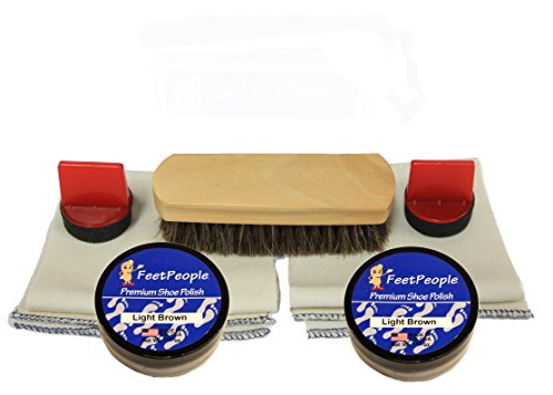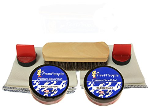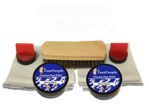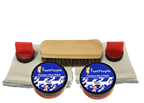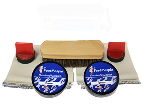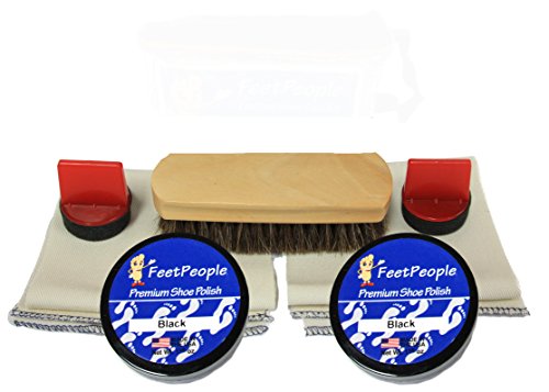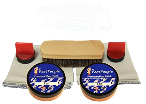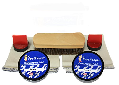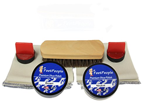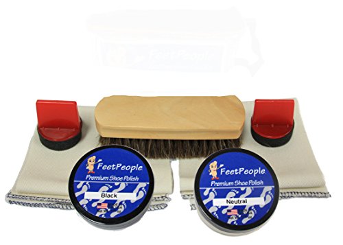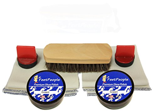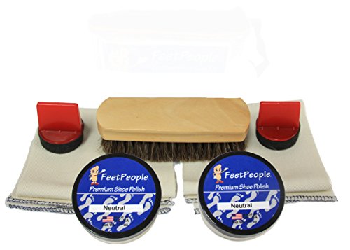 Studio : FeetPeople Publisher : FeetPeople Product Description The FeetPeople Premium Leather Refill Kit contains all the things you need to clean, nourish, buff, and shine your shoes. Our kit includes Two jars of our patented shoe polish that is a blend of pure carnauba wax, beeswax and the finest grade of other ingredients. Two FeetPeople Sponge Daubers that allow you to apply paste or cream polish quickly and easily. Keep your hands cleaner and let the applicator apply the polish. One FeetPeople 100% Horsehair Shine Brush has been designed to provide a nice buff finish for your shoes. This shine brush is simply packed with horsehair to make shining those shoes and boots much easier. While most shine brushes have 5 rows of horsehair, this brush has 6 rows, providing even more buffing power. Two Professional Shoe Shine Buffing Cloths to use after you completing apply the shoe polish on the shoe and done with the brushing. Use the shine cloth to obtain that mirror like finish. 0