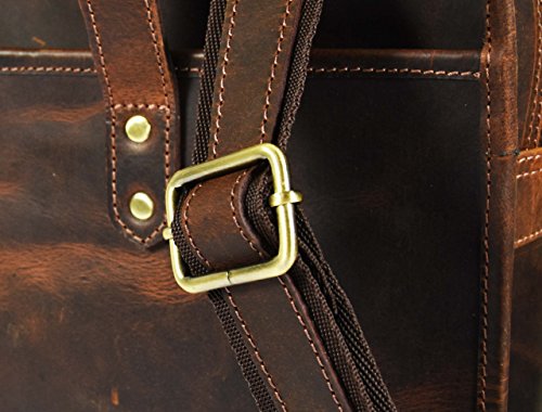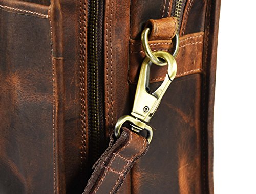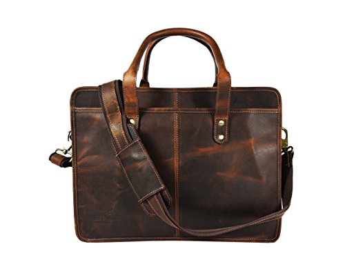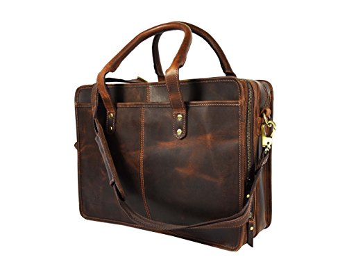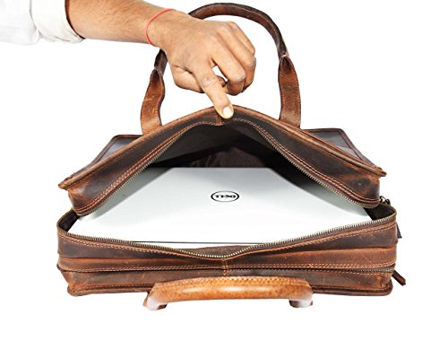 -. Feature : Vintage Leather Briefcase Messenger Bag Made with Made with Finest Quality 100% GENUINE BUFFALO LEATHER. Beautifully handcrafted by traditionally skilled artisans from India. / Measurements ( In cms ) - 40 (Length ) x 30 ( Height ) x 12.5 ( Deep ) . Perfect size to fit a 15 Inch Laptop or MacBook / 2 separate compartments to keep stuff organized. Front - 1 large partition pocket. Inside - small pockets for mobile, power bank, cigarette case, credit carts etc / 1.5 inch wide and 58 inch long adjustable & detachable leather shoulder strap with double hand carry. On each end, there is a hand carry to carry this bag in hand or on shoulder. / Attractive Brush-Stroke Design for Enhanced Look. Heavy Duty Matching Antique Brass Fitting Accessories. Heavy duty POLYSTER lining inside.