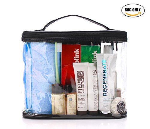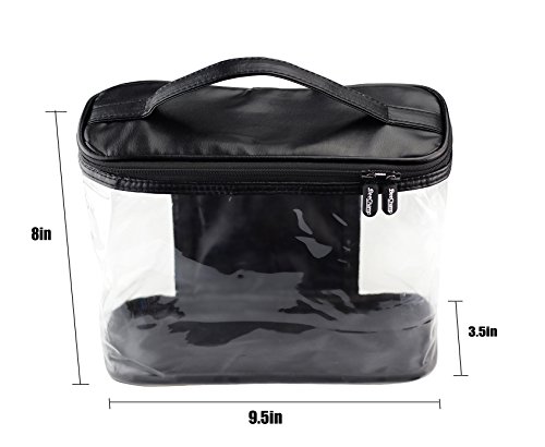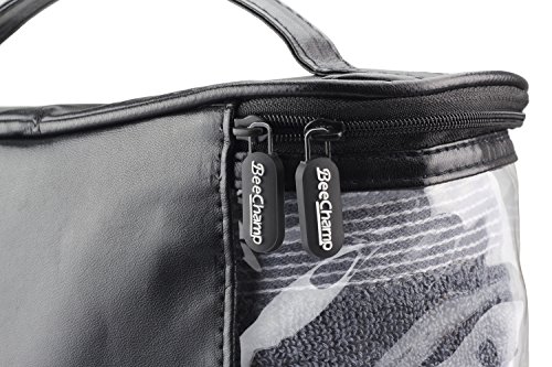 BeeChamp Dual Zipper Cosmetic Makeup Pouch Travel Toiletry Bag PU Leather Bathroom Accessories Organizer Kit