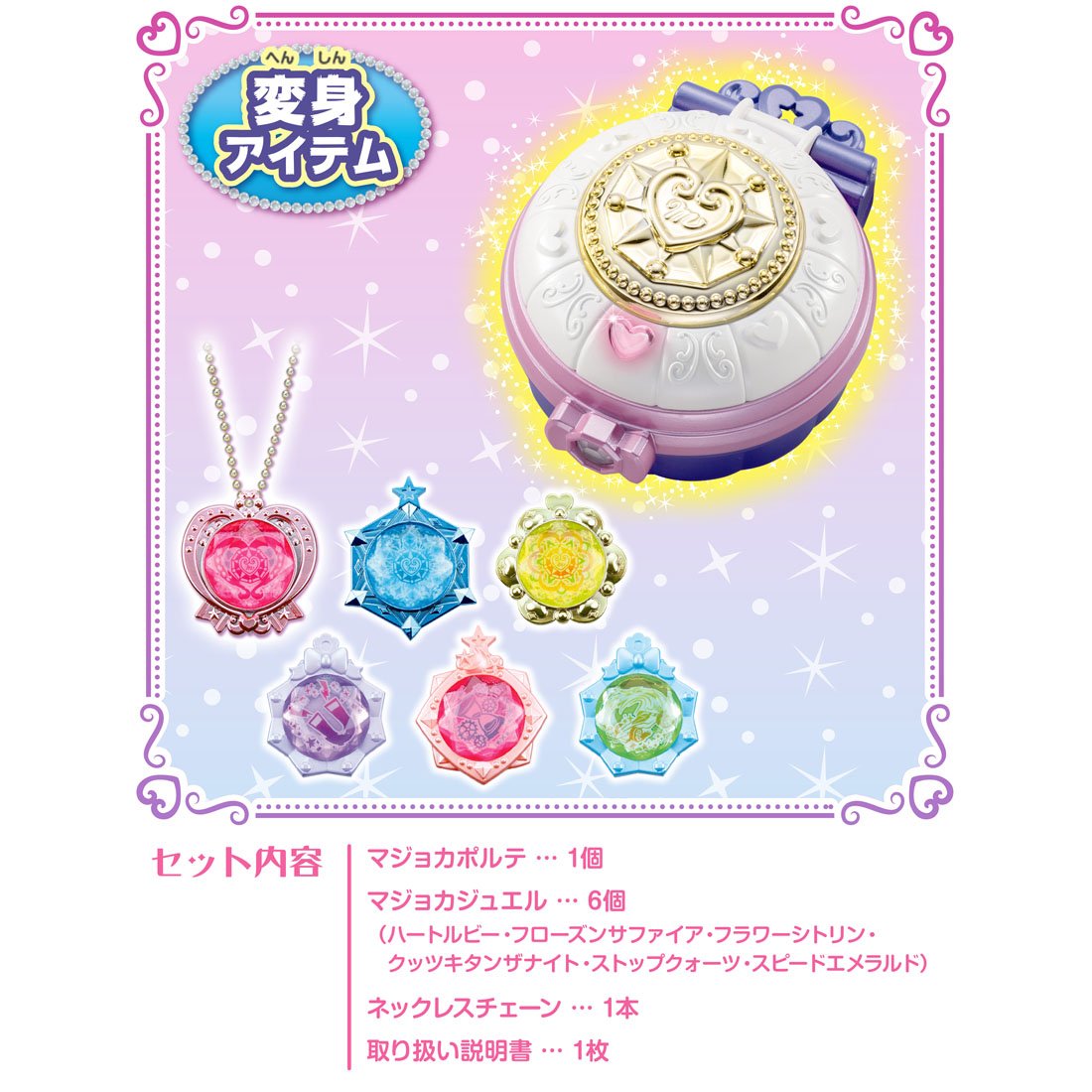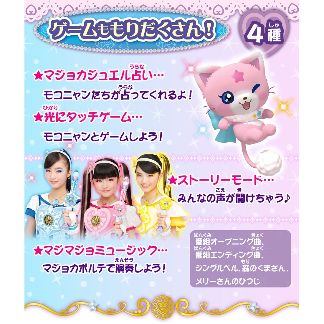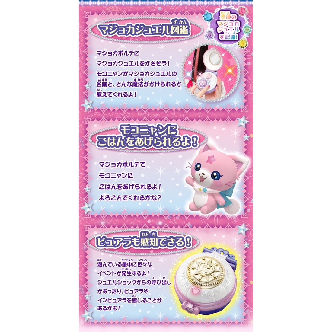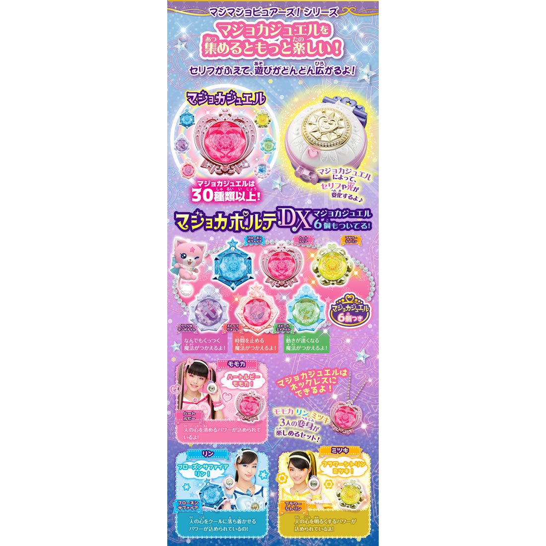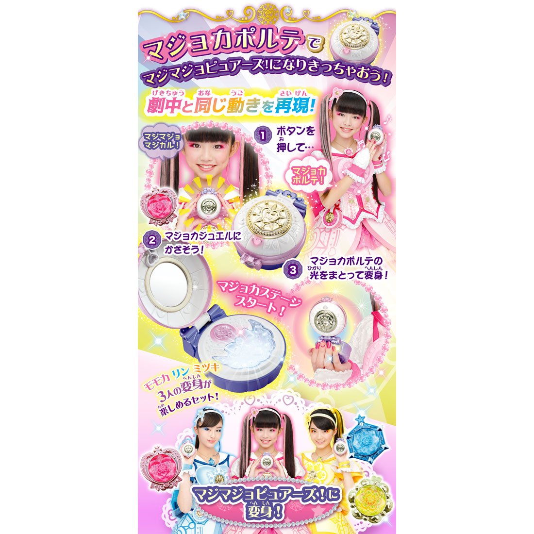 (C) TOMY・OLM/マジマジョピュアーズ!製作委員会・テレビ東京 対象年齢:3歳以上 単4形アルカリ乾電池3本使用(電池は別売です。) 対象性別 女性用