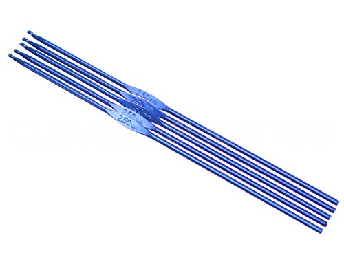5 Pack - CleverDelights Size C (Size 2) Aluminum Crochet Hooks - 6" Length - 2.5mm Diameter - Knitting