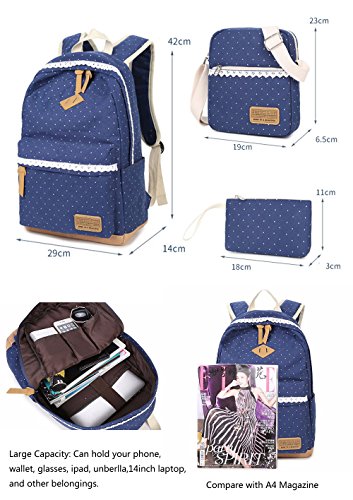 Studio : Canvas High School Backpack for girls Publisher : Canvas High School Backpack for girls Product Description Description - Material: High Quality Canvas - Dimension: 45*32*14.5 CM - Weight: 0.45kg - Mainly made with high-grade durable material, classical and refining design. - Mixmatch with qualify PU leather accessories, elegant and fashionable. - Thicken breathable strap design,comfortable to carry. - Plenty capacity design, most of your daily necessities can be loaded. - Durable PU bottom design, strong and long lasting. - Scientific and reasonable compartments, makes your goods lay in the bag systematically. - Specially equiped with laptop compartment, carry your tablet / laptop easily. - Casual Easy style using for: School, Excursion, Going out, window shopping etc. - Cute Unisex Ladies Women Bag, Backpack For School Youth Teenage Girls Boys