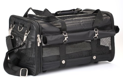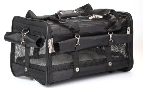 Four mesh panels for ventilation, roll down privacy flaps, top and side entry with locking zippers, seat belt strap