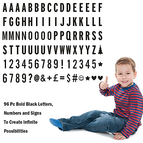 Package: 1 x LED light box 1 x 96pc black letter tiles 1 x 85pc multicolor symbols 1 x USB cable 0