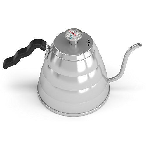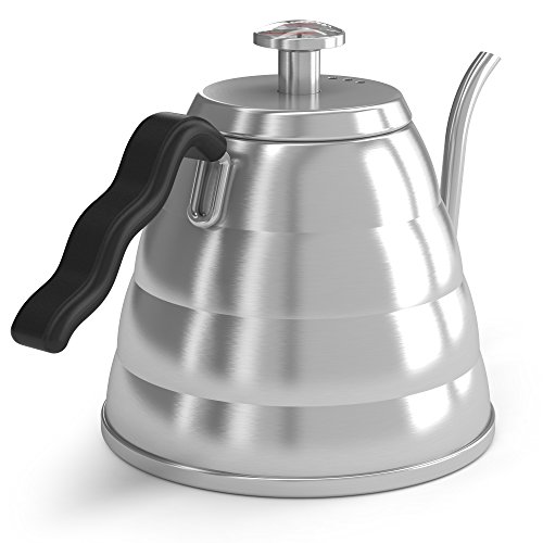 Handbruh-Kaffeekessel 1,2 L aus Edelstahl - Damit Ihre Bohnen nicht mehr verbrennen, mit Thermometer von Coffee Gator eingebaut - Fur einen perfekten, per Hand aufgegossenen Filter