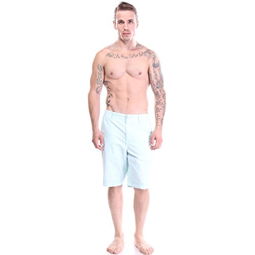 Product DescriptionThese casual, multi stitch shorts feature a sleek flat front and a belt loop waist band with a button and zip fly enclosure.0