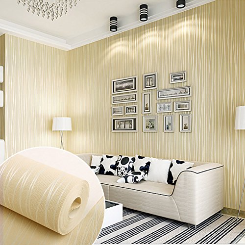 Trendy source 3d Textured Wallpaper, Modern Non-Woven Pattern Environmental Protection Wallpaper 21.6 x 393.7 for wall murals for Livingroom, Bedroom Background Beige Yellow