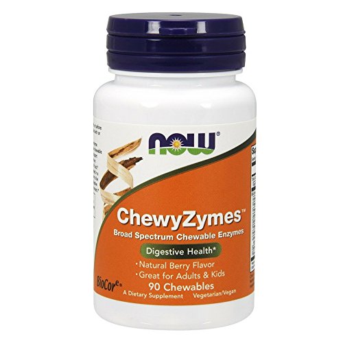 ChewyZymes™ from NOW is a broad spectrum digestive enzyme formulation in a natural berry-flavored, vegetarian chewable tablet for adults and children. It is designed to support improved digestion of meals. Digestive enzymes are essential to the body's absorption and full use of food. The enzymes in this product are Non-GMO. They have been proven in a controlled laboratory study by the Netherlands Organization for Applied Scientific Research (TNO Nutrition and Foods Research) to have efficacy throughout the entire pH rane of the digestive system and to not be degraded by acid in the stomach.*Feature