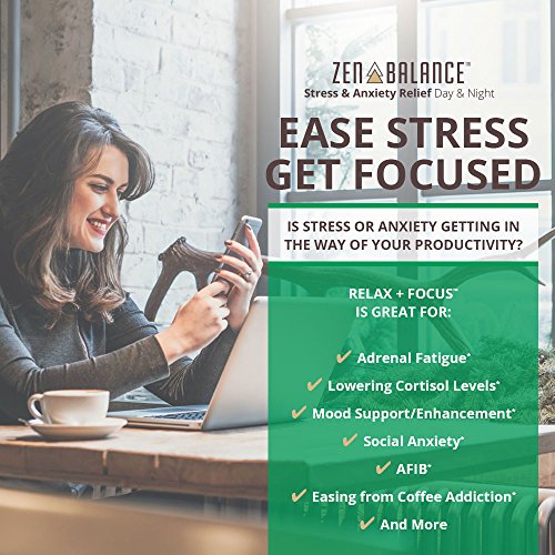 Zen Balance Wellness Co's Relax + Focus is a premium stress and anxiety relief supplement that can be taken any time without causing drowsiness.