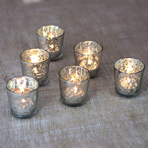 Luna Bazaar Vintage Mercury Glass Candle Holders (2.5-Inch, Lila Design, Liquid Motif, Silver, Set of 6) - For Use with Tea Lights - For Parties, Weddings, and Homes - Mercury Glass Votive Holders
