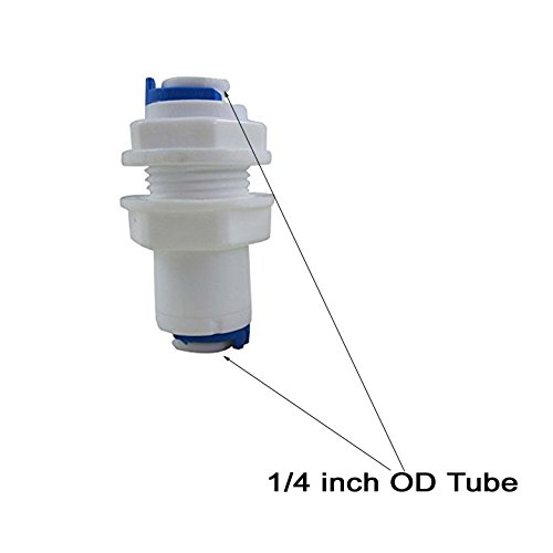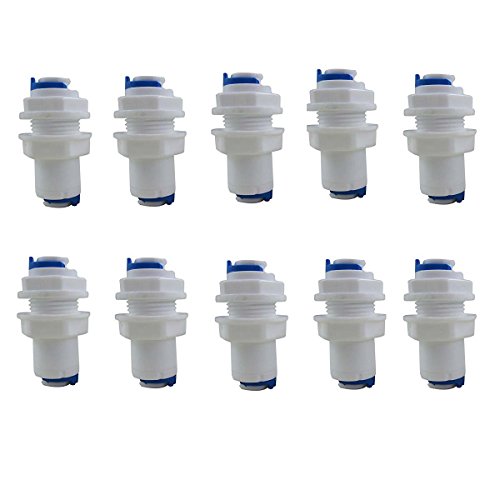 YZM White Fittings Bulkhead Connector 1/4" Tube Quick connect RO Water Filter Pack of 10 (Bulkhead Connector 1/4)