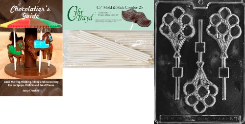 Cybrtrayd 'Bunch of Balloons Lolly' Kids Chocolate Candy Mold with 25 4.5-Inch Lollipop Sticks and Chocolatier's Guide