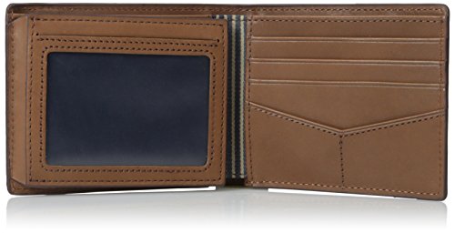 Crafted in smooth leather and accented with a striped locomotive-inspired fabric, our new knox flip id bifold is made to fit the (style) bill. Interior features a flip-out id window for quick convenience and has plenty of room to house cards, coins and cash. Exterior has a hidden front-slit pocket for added storage.Feature
