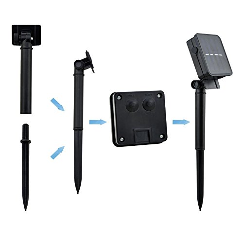 - Feature : Great decoration for your gardens and porch by hanging the string light among the shrubs, trees and other areas / Uniquely icicle designed LED string lights, powered by solar with a high-performance solar panel kit, energy-saving and eco-friendly. / Automatically turn on at dusk and turn off at dawn. Just make sure to turn on the switch. It also could be working when there is not enough sunshine, just open the charger cover to change a AA battery (Rechargeable AA 440mAh battery included) / 2 modes swithed to be chosen: ON / OFF & Flash. It could be total working time more than 10,000 hours after 6 hours fully charged. / Can be used indoor and outdoors, fully waterproof. Wire measures: 6 m