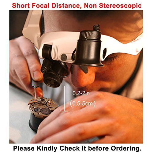 ▲▲▲Non Stereo Vision for Close Work – it can't use both eyes lens when you are working because its short focal distance from lens to product is 0.2-2in (0.5-5cm), just like the principle of a microscope. It means you need to put the lens near to the surface of the observed object. ★★★For longer focal point model with double eyes, please refer to Size 1.0X to 3.5X.