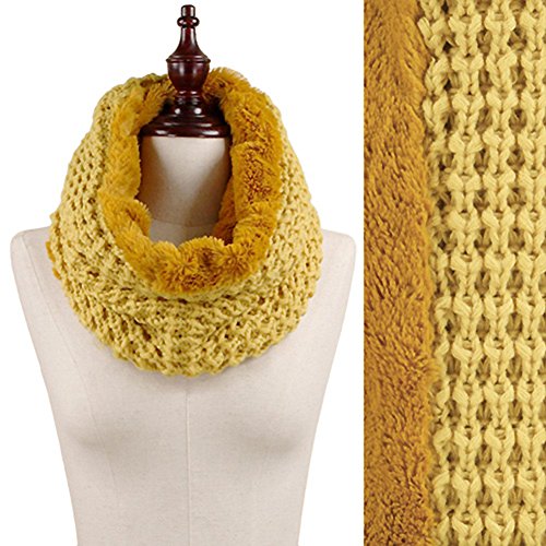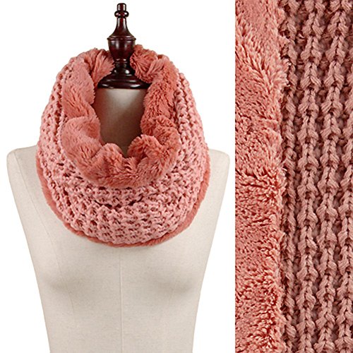 StylesILove Rib Knit and Faux Fur Infinity Cowl Scarf, 3 Colors