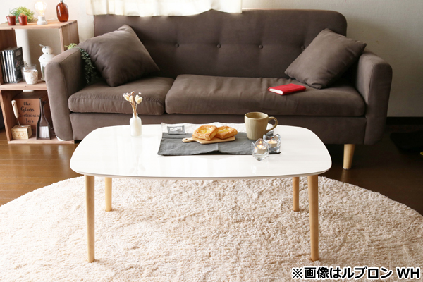 ●木目調の鏡面仕上げが美しいテーブル。ちょっとした軽食時や書き物におすすめ。