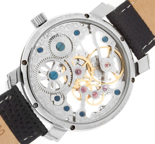 (Akribos XXIV)/Watches/Categories/DIRECT FROM USA/Akribos XXIV Men's AK406SS Bravura Davinci Mechanical Stainless Steel Watch with Black Leather Band