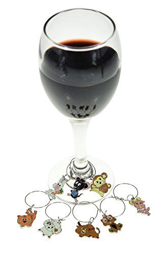 -. Title : Animal Wine Glass Charms - Set of 8 Colorful Animal Charms, Monkey, Sheep, Rabbit, Mouse, Cat, Bull, Dog and Pig Wine Charms - Tags to Mark Your Drinks