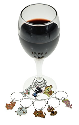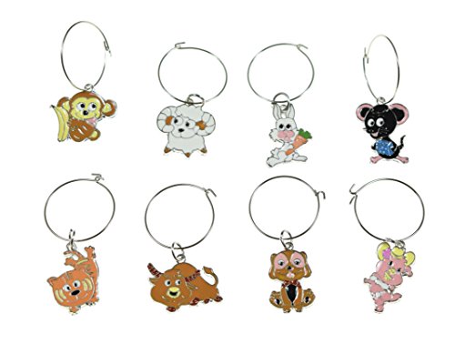 -. Feature : Colorful Animal Designs / Set of 8 Charms Per Purchase - so you'll always know exactly which glass is yours / Celebrate your unique style with these cute wine charms / Set comes with 8 metal charms / Monkey, Sheep, Rabbit, Bull, Dog, Cat, Pig and Mouse