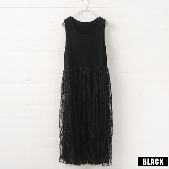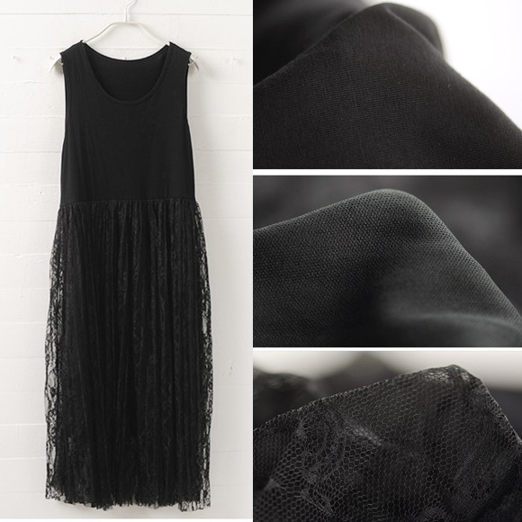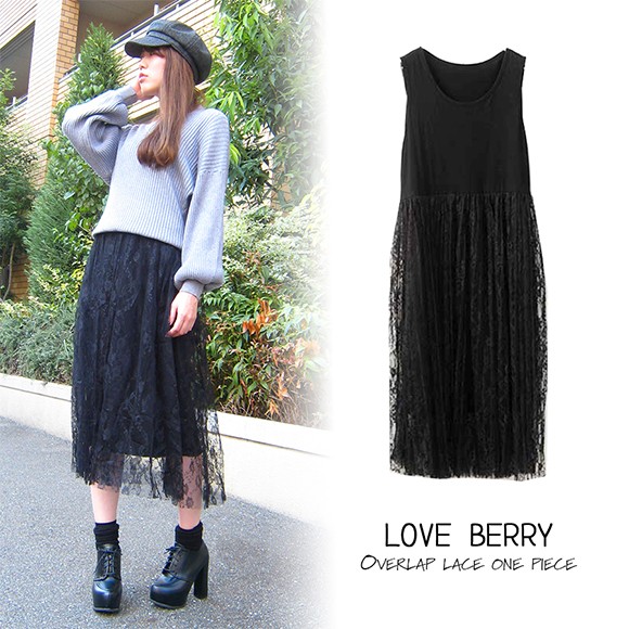 ブラックのレースが大人っぽいワンピースはパールなどのアクセサリーと